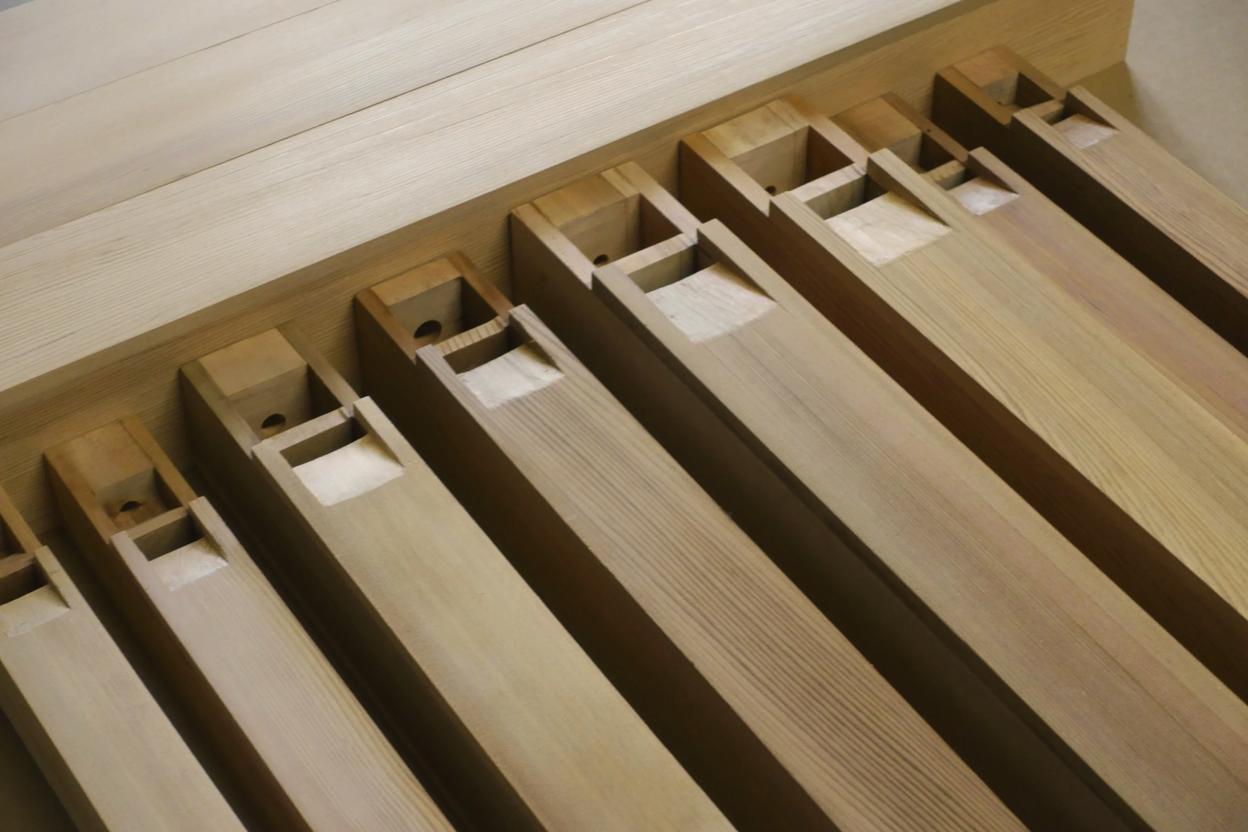 This exhibition transforms the sauna into a resonant, listening space where sound and heat become entwined. Inside the sauna, sustained tones emerge from custom-built wooden organ pipes, filling the room with a soft, breath-like sonic presence. The tuning of the pipes becomes an index of the temperature of the air: as varying heat subtly bends the tones, producing slow undulating patterns. Listening becomes inseparable from sensing heat as the entire body participates in joining these phenomena together.
